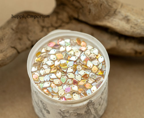 1.5x5mm Crystal Lemon Rainbow Czech Glass Dragon Scale Beads – 5 Grams – 4202 R