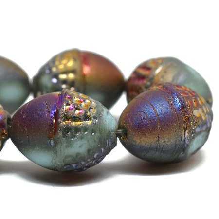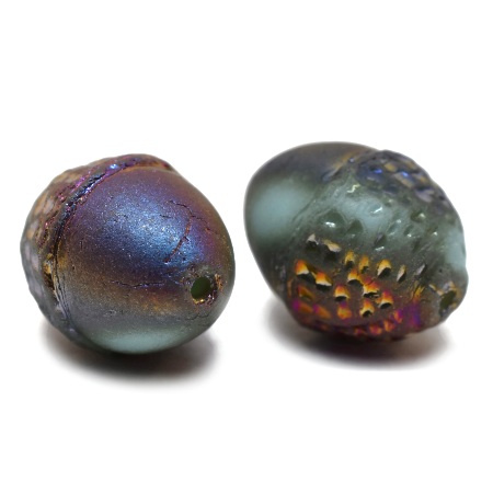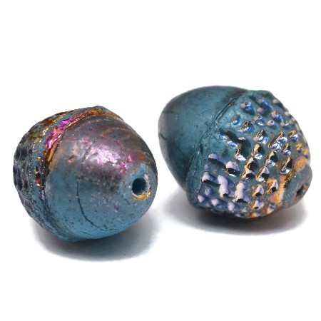 10x12mm Matte Sky Blue Gold/AB Czech Acorn – 2 pieces – 5881RR