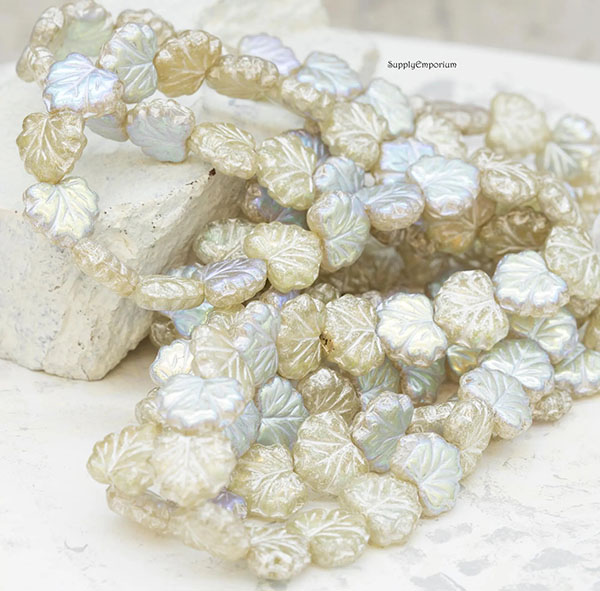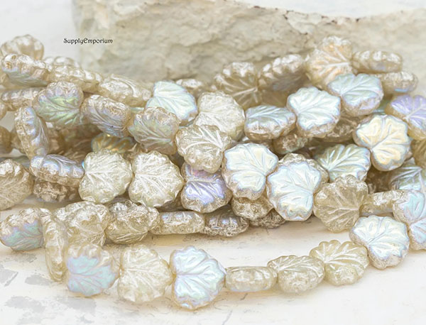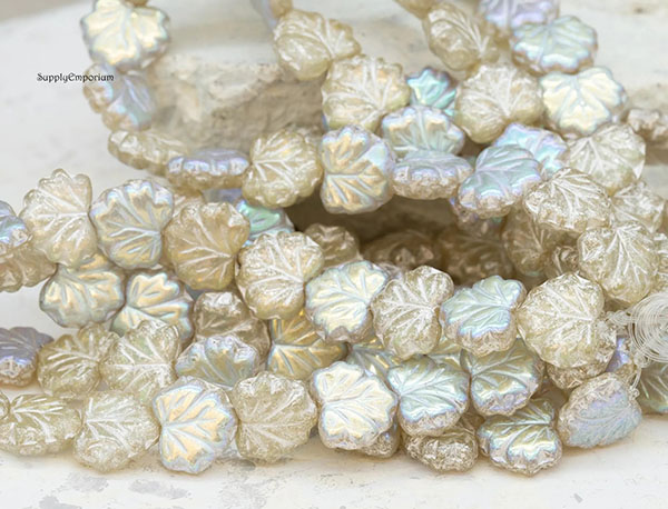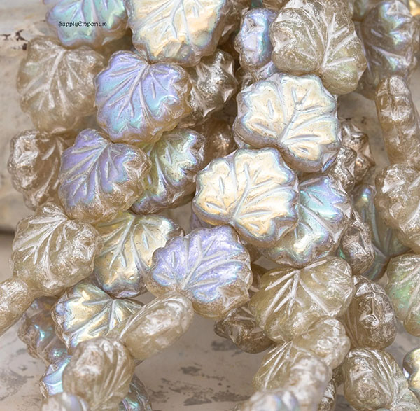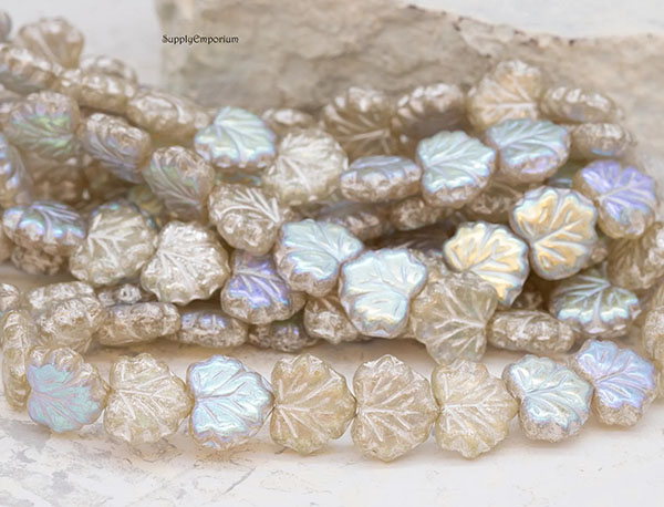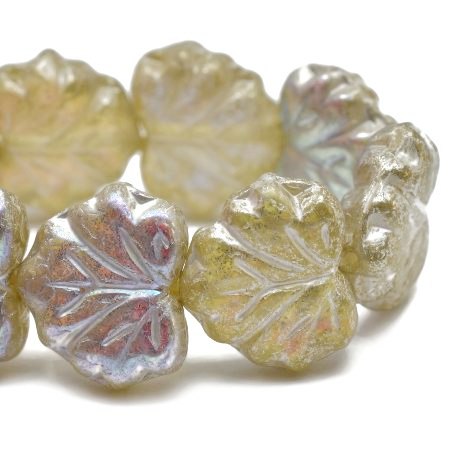 10x13mm Pale Yellow AB/Silver Czech Maple Leaf – 20 pieces – 3391RR