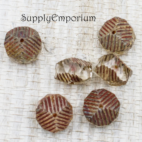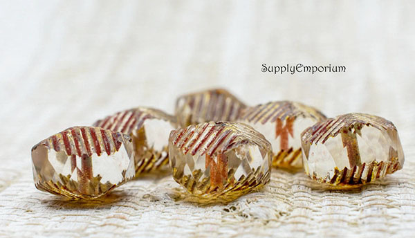 10X14mm Trans Glass with Picasso Finish Czech Curvy Rondelle – 6 Pieces – 2989R
