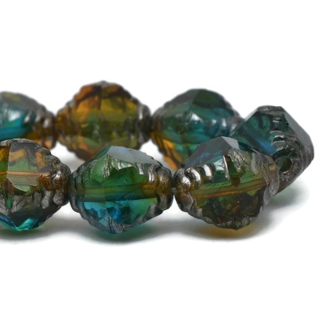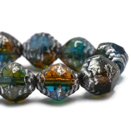 10x8mm Silver Wash Teal Topaz Czech Bicone – 12 pieces – 7047