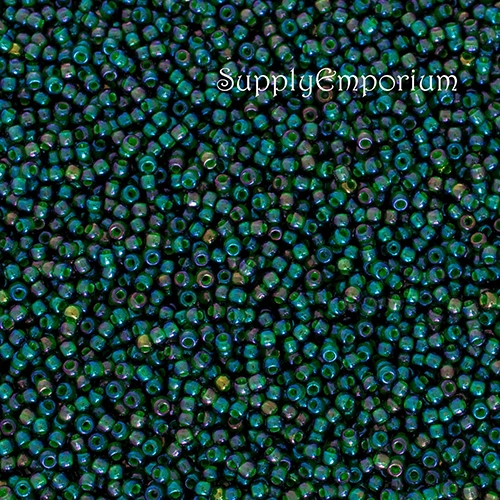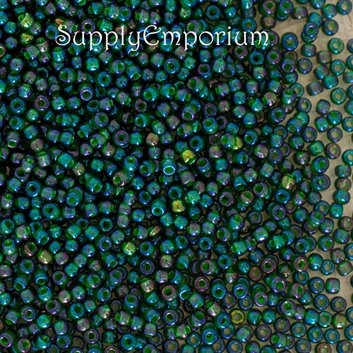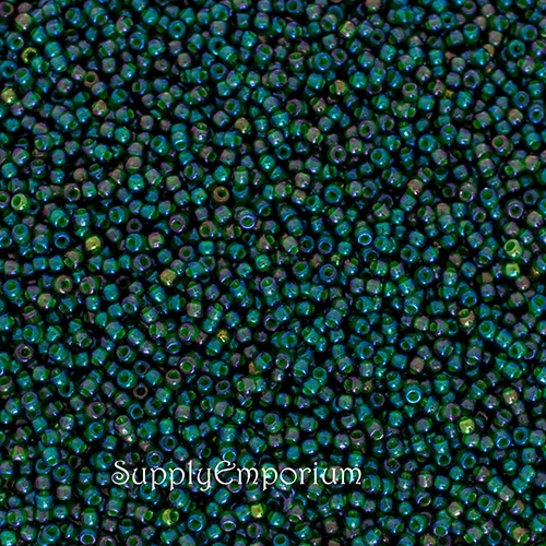 11/0 Opaque Green Lined Rainbow Montana Blue Toho Seed Bead – Quantity: 10 grams – 5625