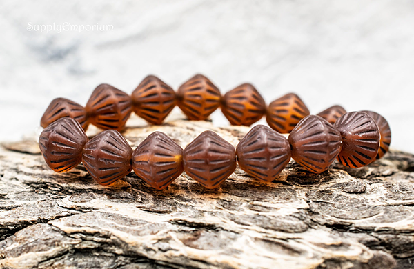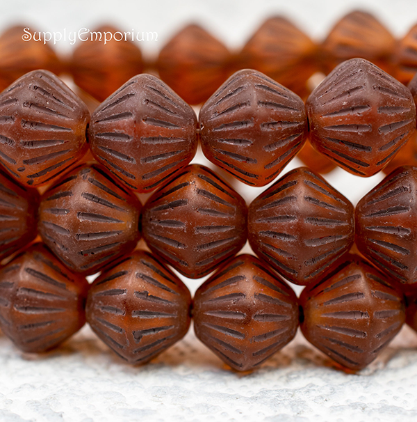 11mm Brown Wash Matte Alloy Orange Czech Bicone – 10 pieces – 7050