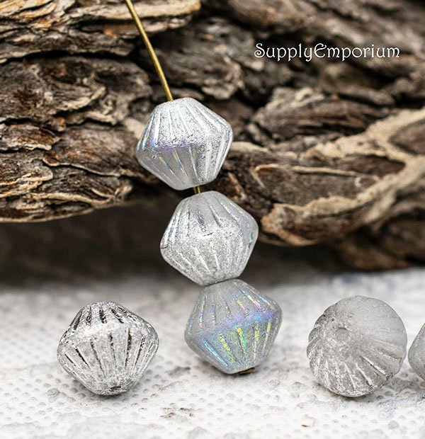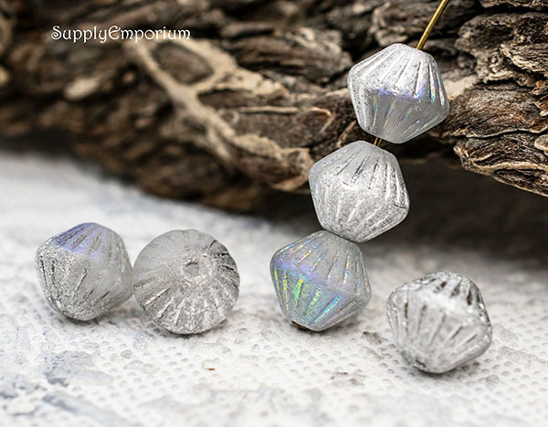 11mm Etched Silver AB Czech Bicone – 15 pieces – 4492R