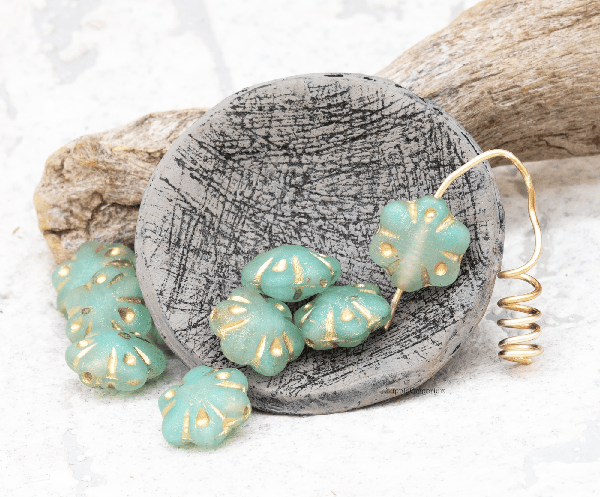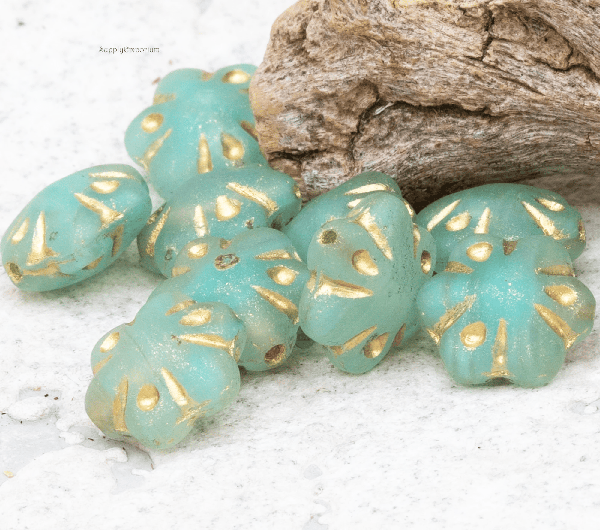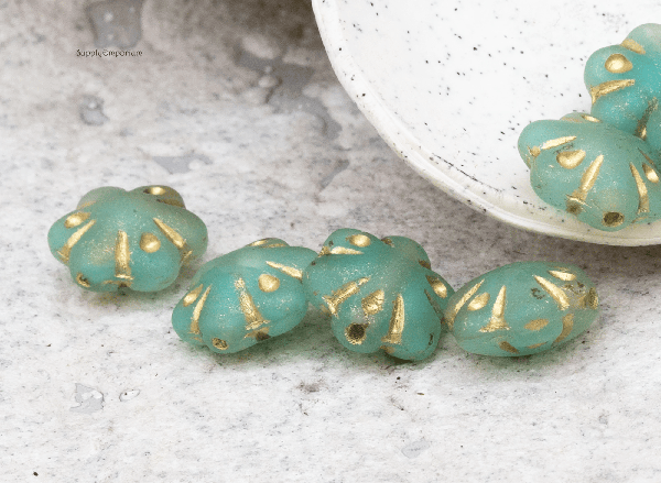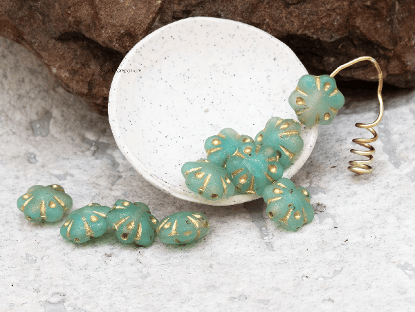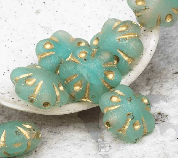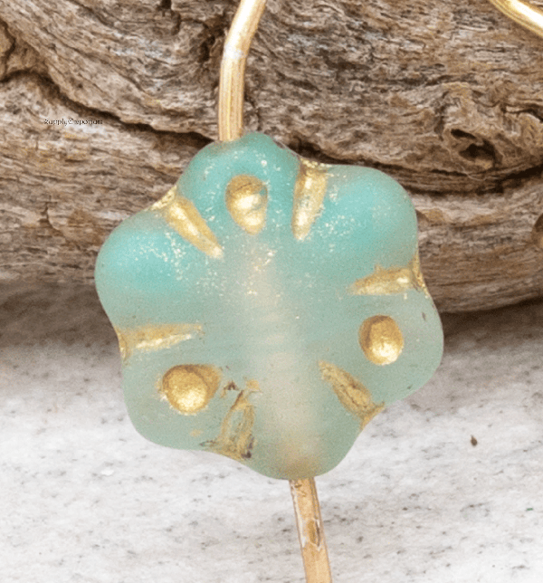11mm Matte Turquoise Green Gold Wash Czech Folklore Flower – 12 pieces – 2474R