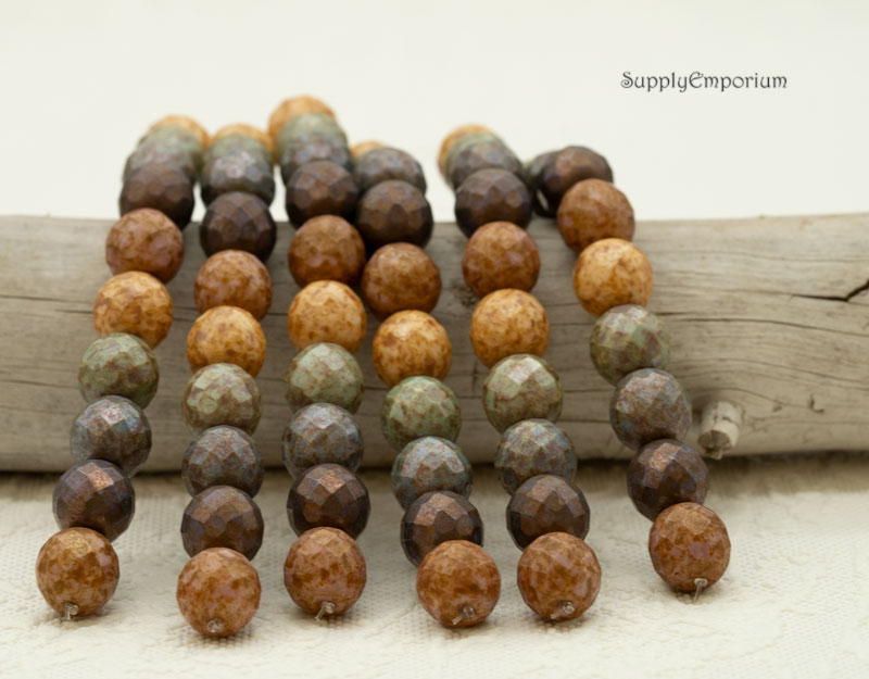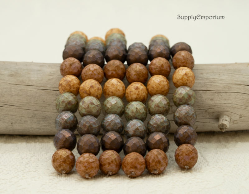 12mm Natural Rainbow Picasso Mix Czech Glass Fire Polish Round – 12 Pieces – 1471RR