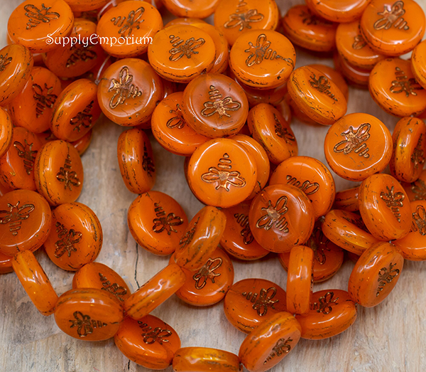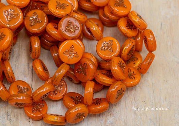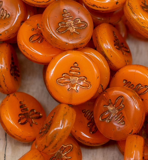 12mm Orange Opaline Picasso Bee Czech Coin – 6 Pieces – 2362R