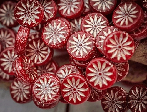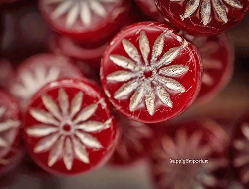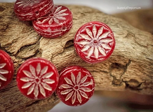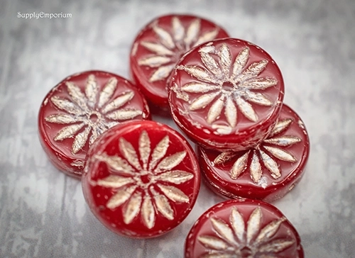 12mm Red Opaline Platinum Wash Aster Czech Coin – 6 pieces – 2842R