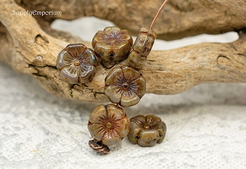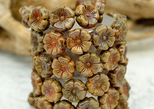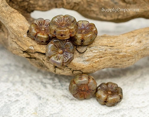 12mm Rootbeer Picasso Czech Flower – 6 pieces – 2343R