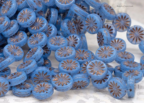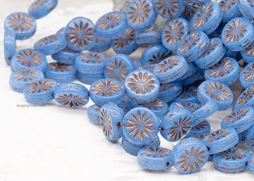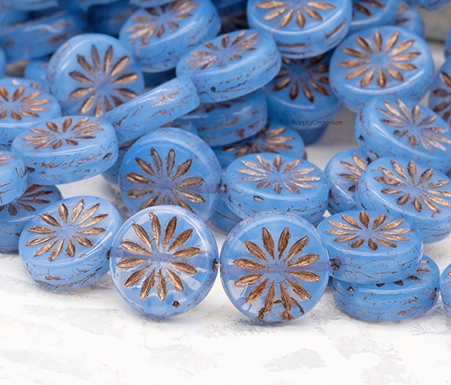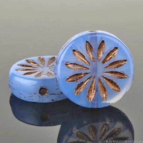 12mm Sapphire Opaline Bronze Aster Czech Coin – 10 pieces – 2227R