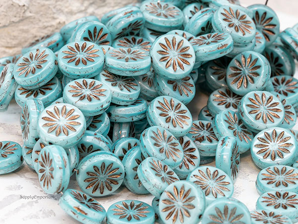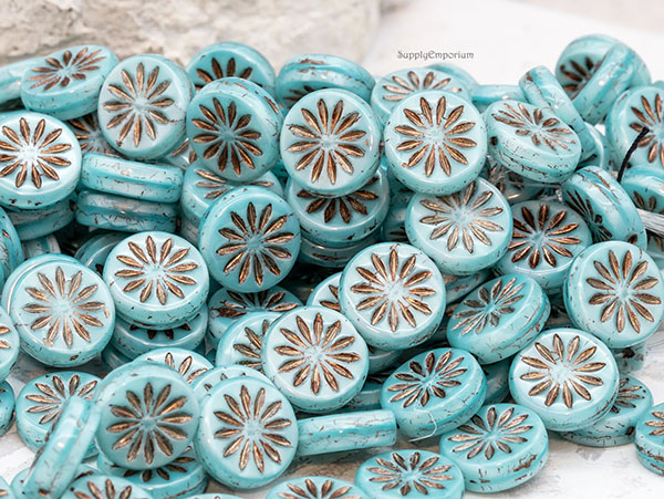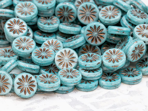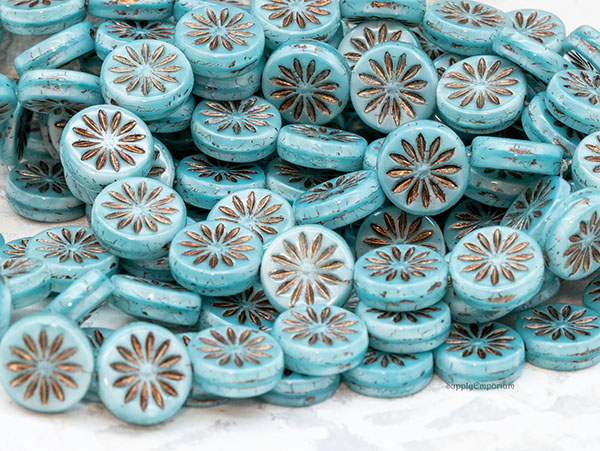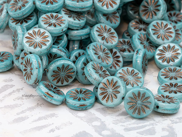 12mm Sky Blue Silk Bronze Aster Czech Coin – 10 pieces – 375RR