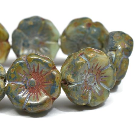12mm Sky Blue w/ Heavy Picasso Czech Flower – 12 pieces – 1653RR