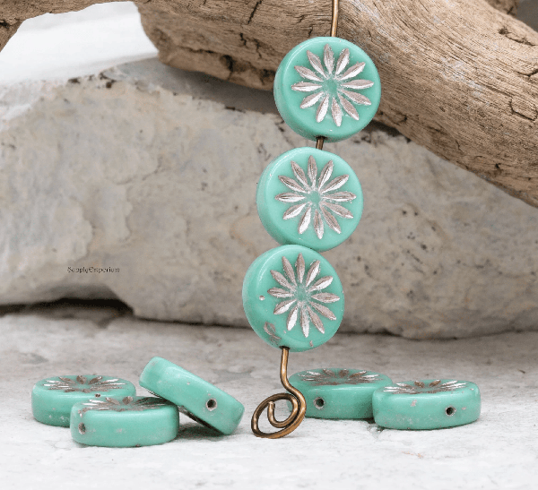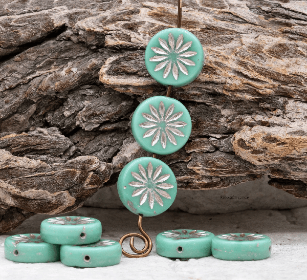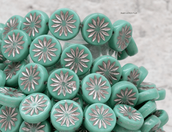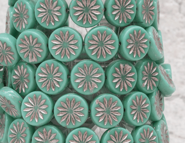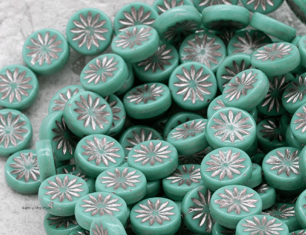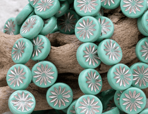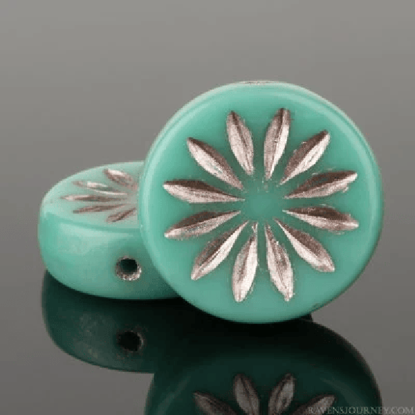 12mm Turquoise with Platinum Wash Aster Czech Coin – 15 Pieces – 5245R