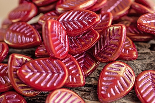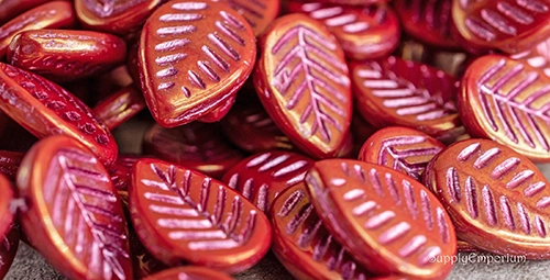 12x16mm Gold Lustered Red Czech Dogwood Leaf – 16 Pieces – 6702W