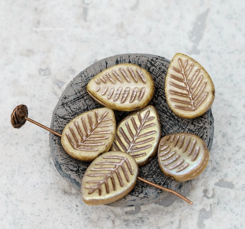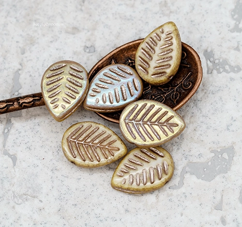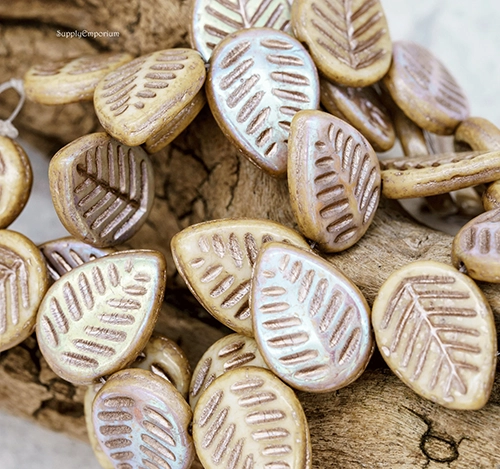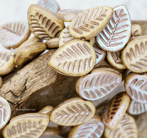 12x16mm Metallic Champagne Pink AB Czech Dogwood Leaf – 15 Pieces – 7441W