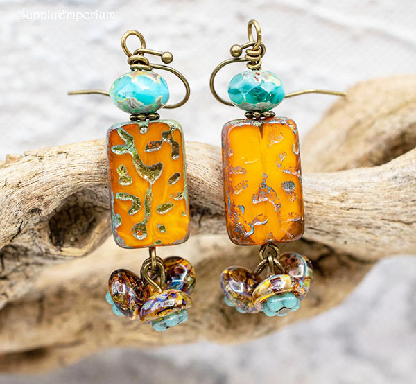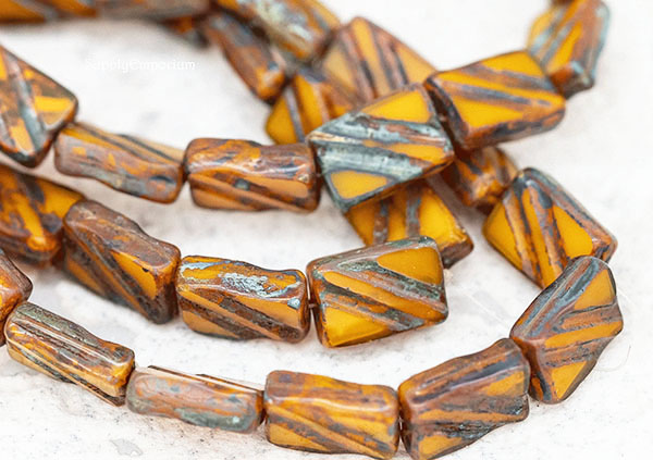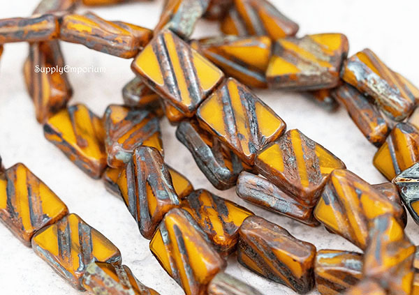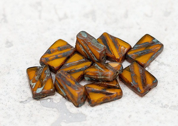 12×8 Orange Opaline Picasso Czech Rectangle – 10 pieces – 4198RR