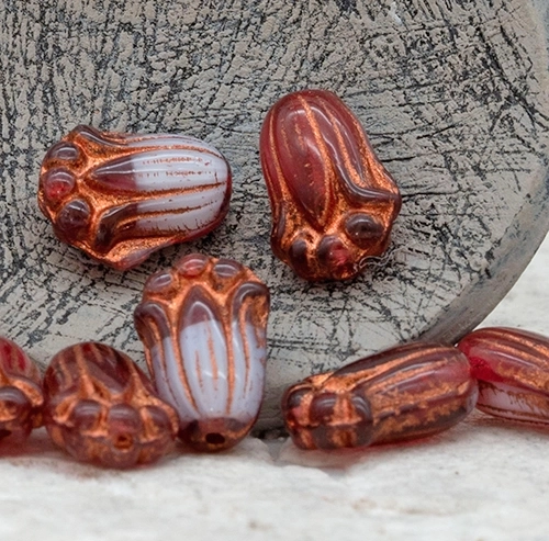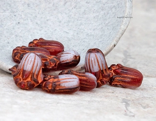 12x8mm Lilac Amethyst Copper Wash Czech Tulip Bud – 12 Pieces – 1928R