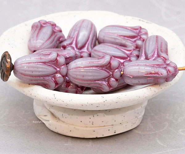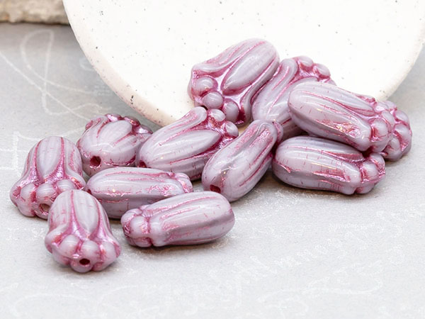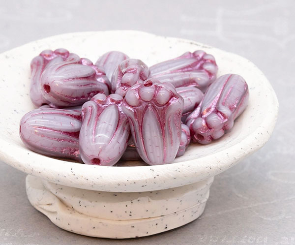 12x8mm Lilac Met Pink Wash Czech Tulip Bud – 12 pieces – 1846RR