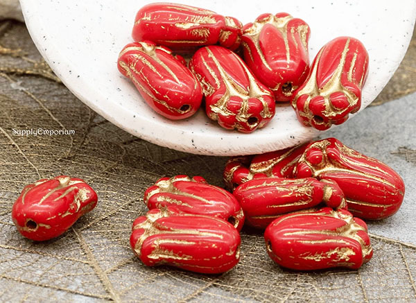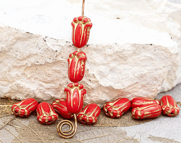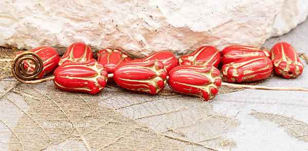 12x8mm Red Gold Wash Czech Tulip Bud – 12 pieces – 4315R