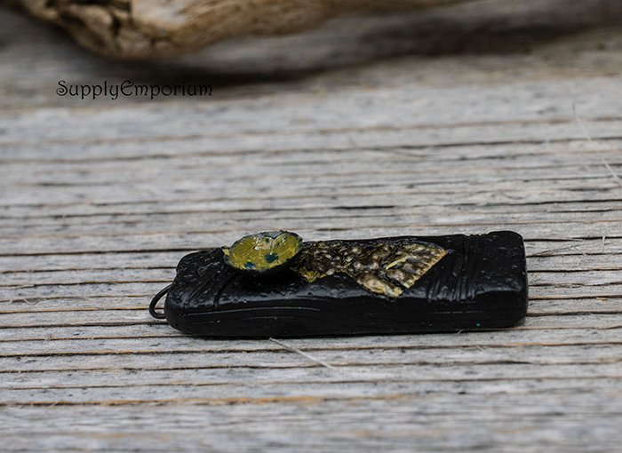 Shape: Irregular rectangle with an embedded wire bail loop.