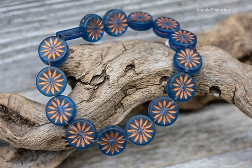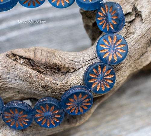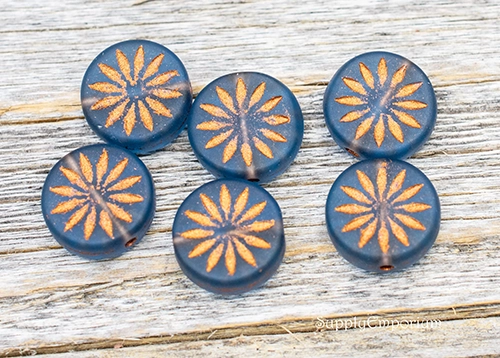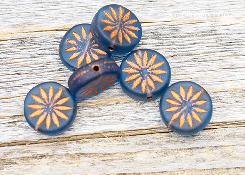 13mm Aster Copper Wash Matte Montana Blue Czech Coin – 6 pieces – 7185W