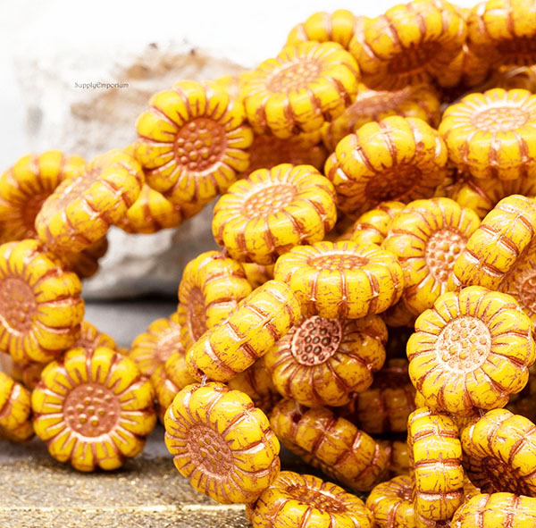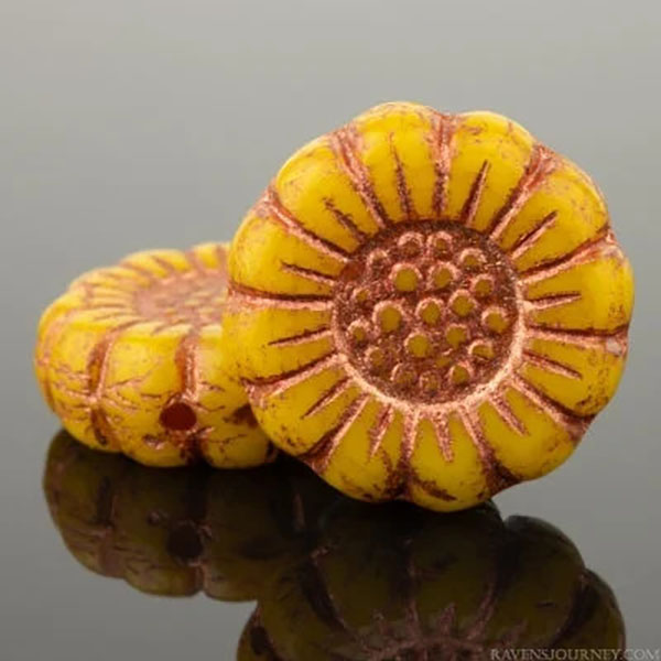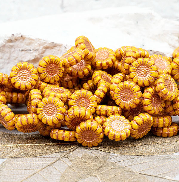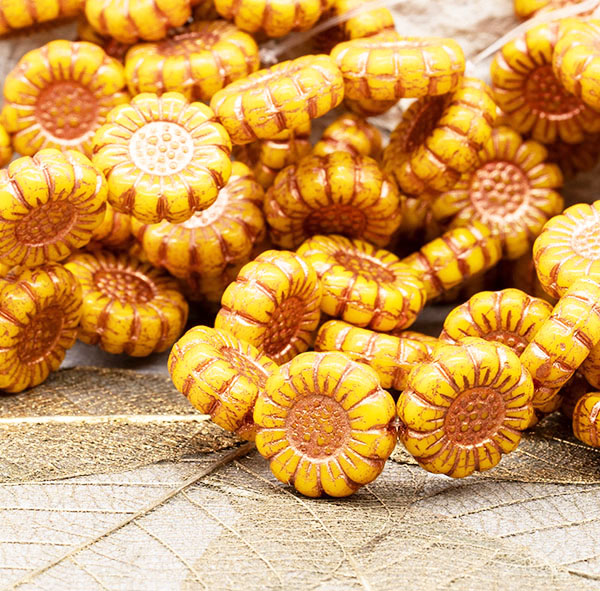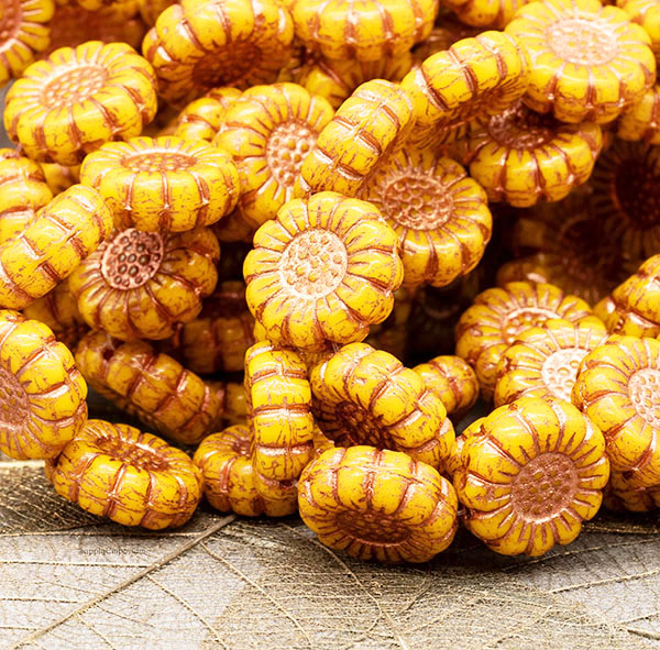 13mm Light Orange Copper Wash Czech Sunflower – 12 pieces – 2006RR