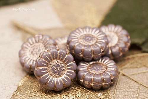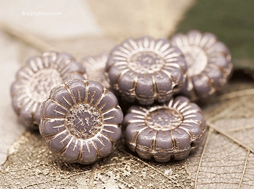 13mm Purple Op Platinum Wash Czech Sunflower – 12 pieces – 881R
