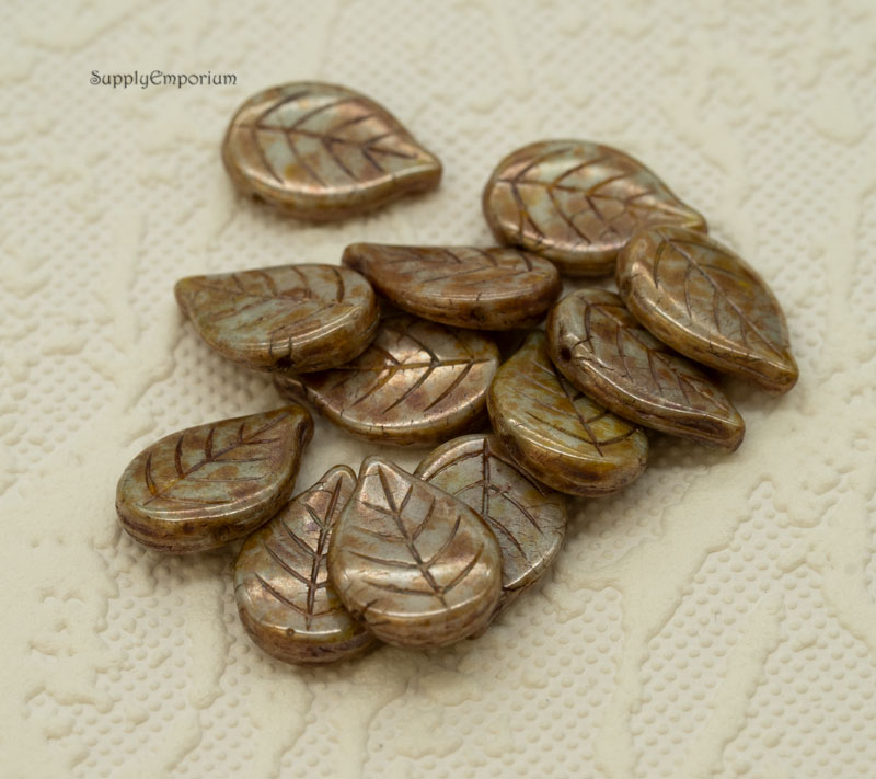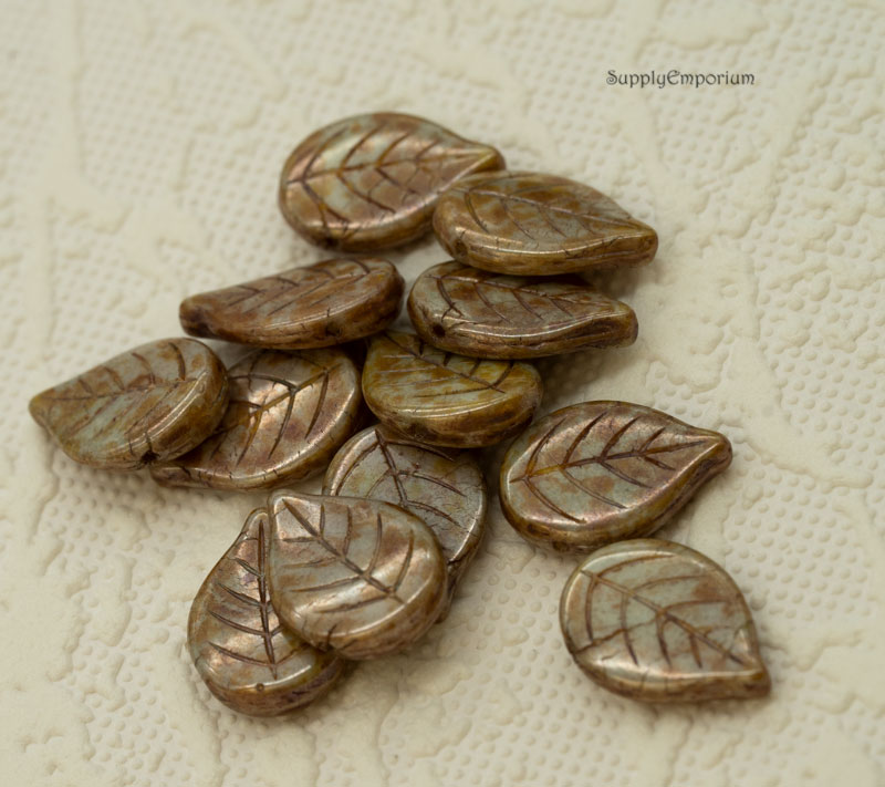 13x18mm Chalk White Green Luster Czech Leaf – 12 Pieces – 1468R