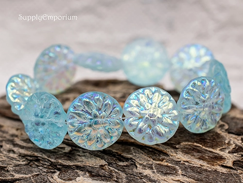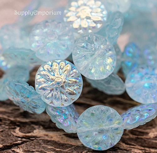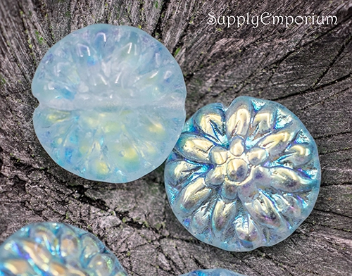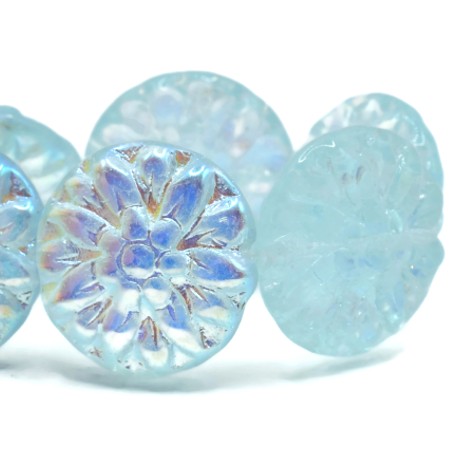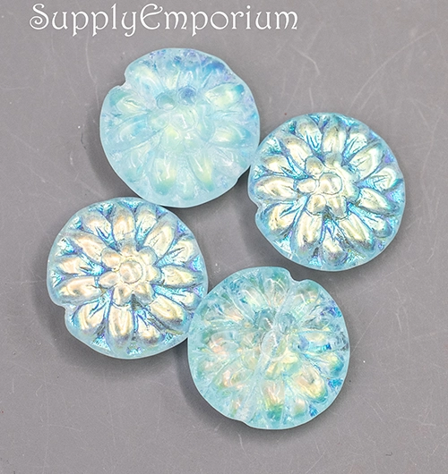 14mm Aqua AB Czech Dahlia Flower – 4 pieces – 7046