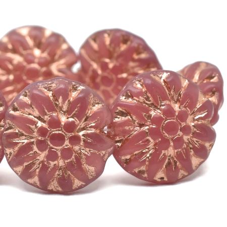 14mm Dusty Rose w/Copper Czech Dahlia Flower – 10 pieces – 1950RR