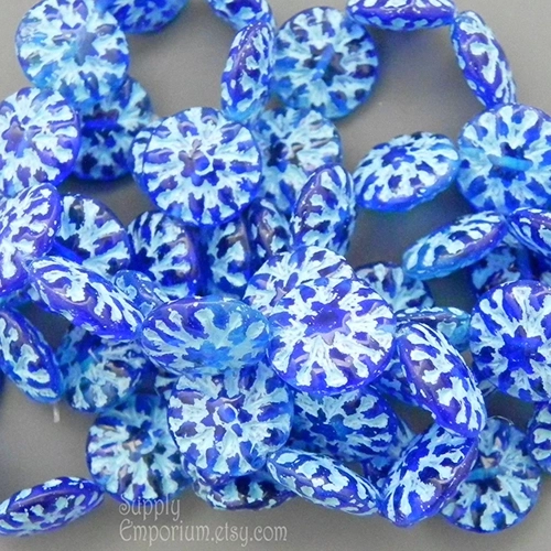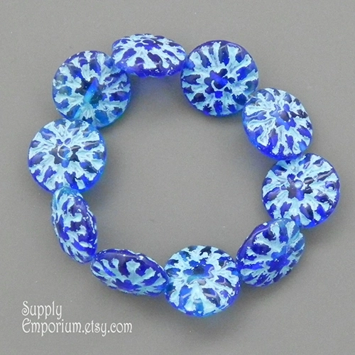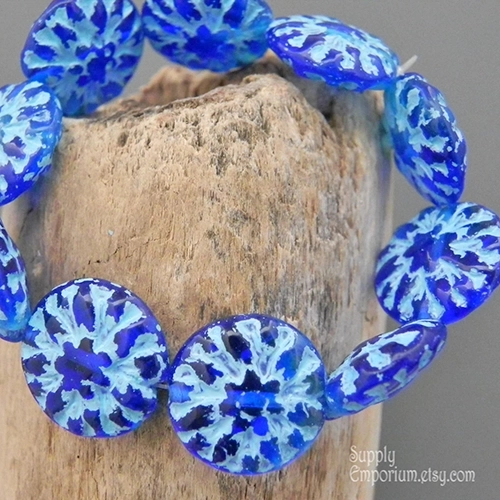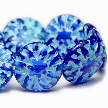 14mm Ocean Blue Turquoise Wash Dahlia Czech Dahlia Flower – 6 pieces – 3126
