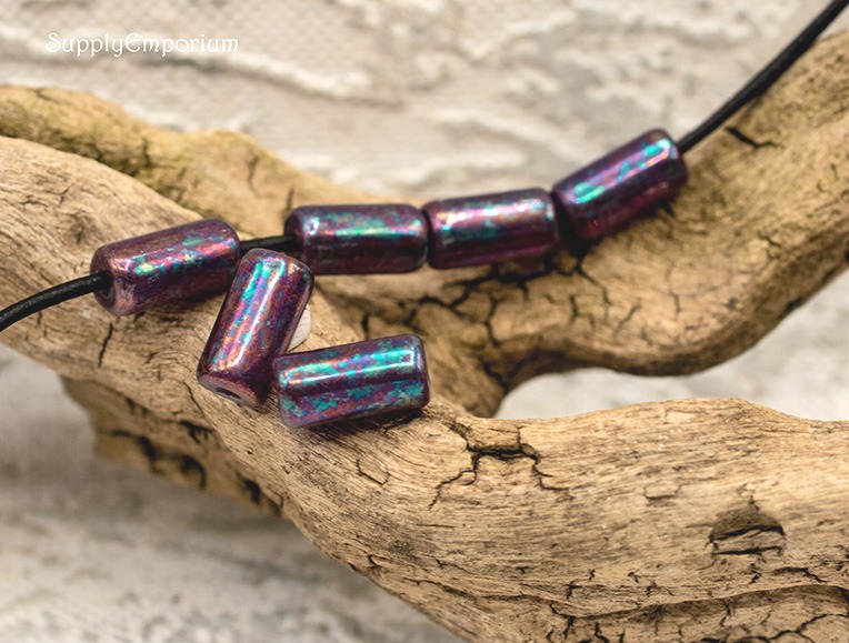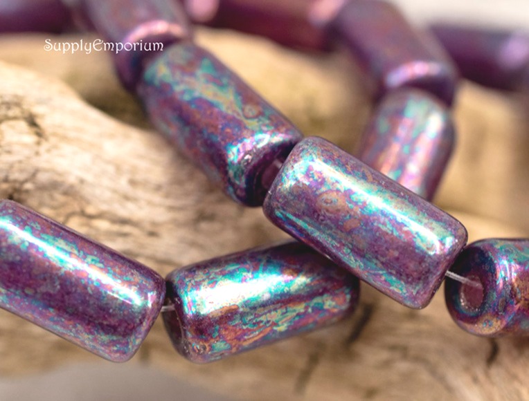 14x7mm Metallic Purple Mother of Pearl Czech Tube – 10 pieces – 2003R