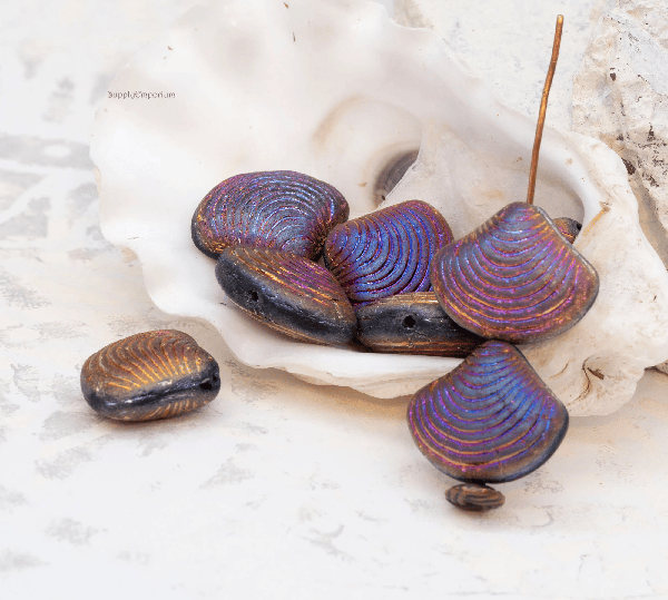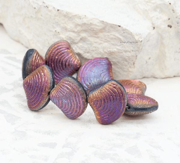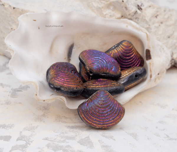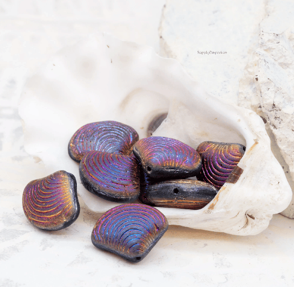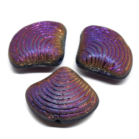 15x18mm Black w/Metallic Volcano Czech Carved Shell – 8 pieces – 4246R
