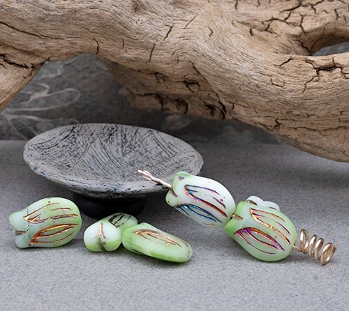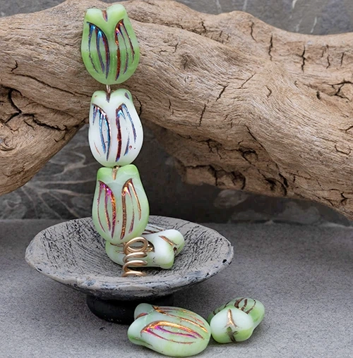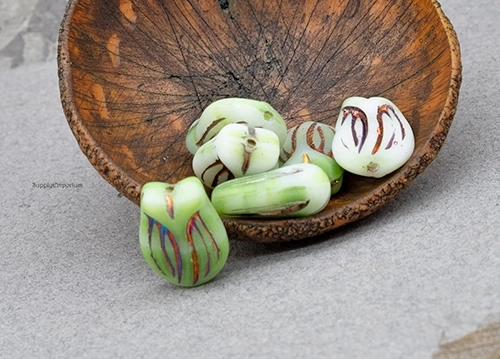 16x11mm Mint Met Sliperit Wash Czech Tulip – 10 Pieces – 2215RR