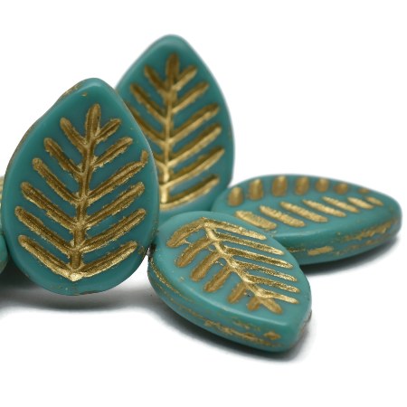 16x12mm Gold Wash Tiffany Green Czech Dogwood Leaf – 15 pieces – 1784R