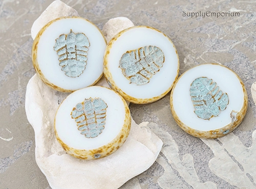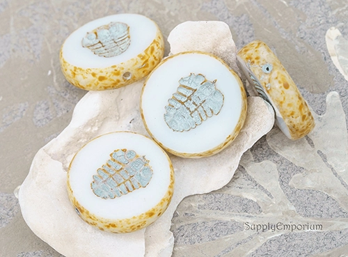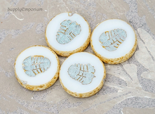 17mm White Picasso w/Sage Wash Coin Czech Trilobite – 4 Pieces – 745R