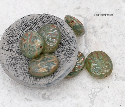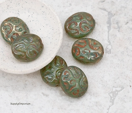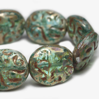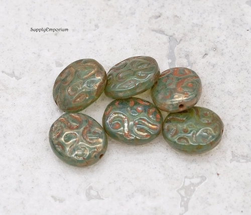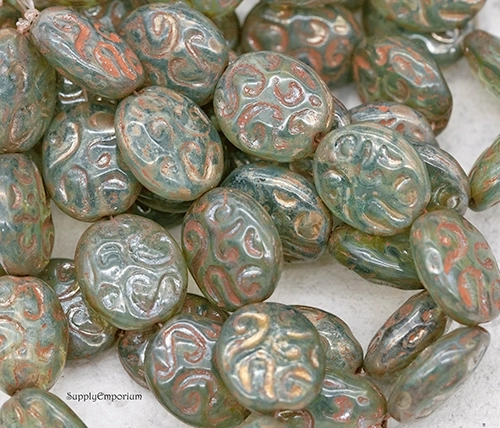 17x14mm Aqua/Olive Picasso Swirls Czech Oval – 12 pieces – 2012