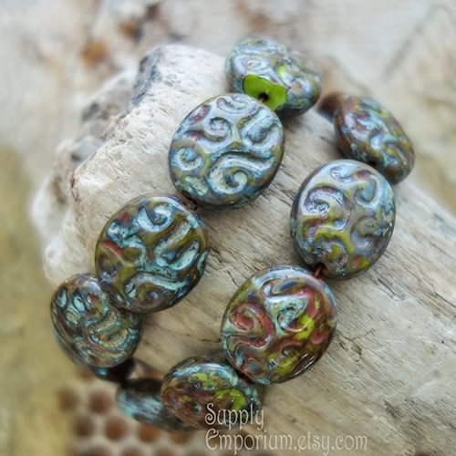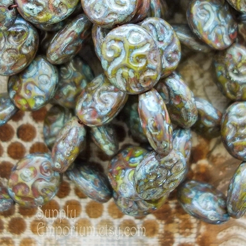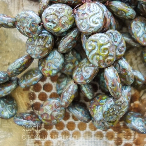 17x14mm Green Brown Czech Oval – 6 pieces – 1793