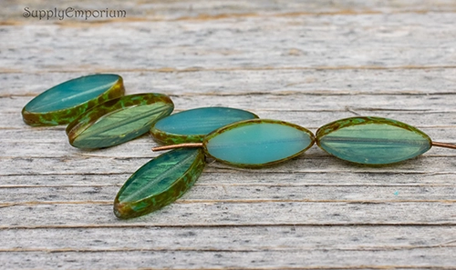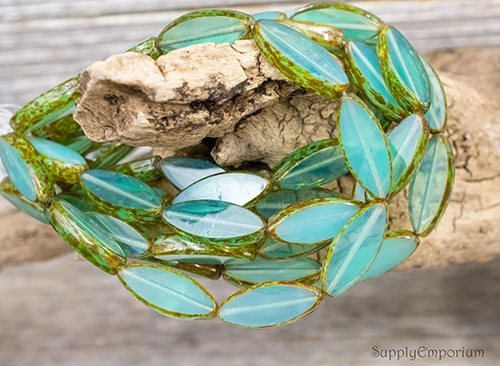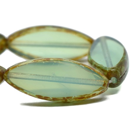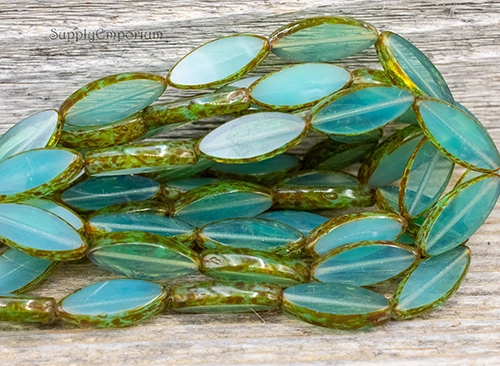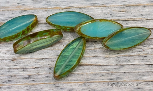 18x7mm Trans Aqua Picasso Czech Spindle – 10 pieces – 2559R