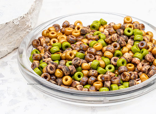 2/0 Mossy Bank Czech Matubo Seed Bead Mix – Quantity: 15 grams – 1487RR