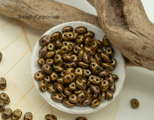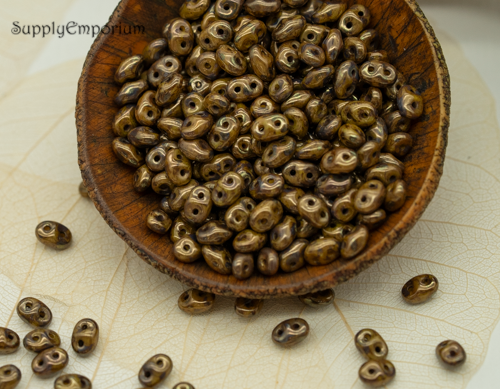 2.5x5mm Opaque Yellow Bronze Picasso Superduo 2 Hole Beads – 15 grams – 3116RR