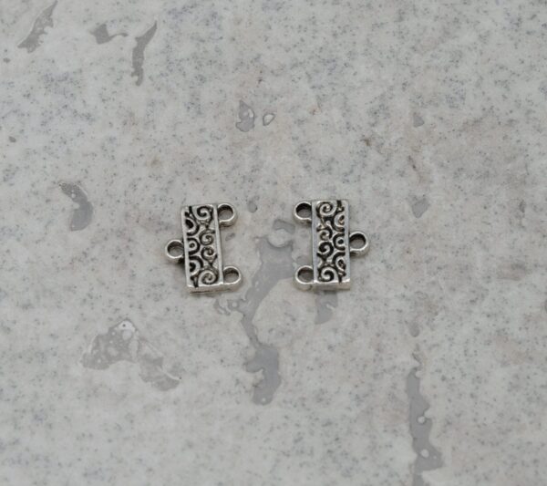 Style: 2 strand connector with 2 loops on one end and 1 loop in the other