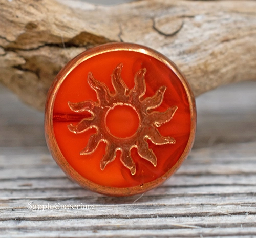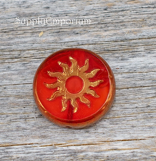 22mm Red Orange Picasso Czech Coin – 2 Pieces – 6944