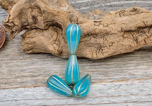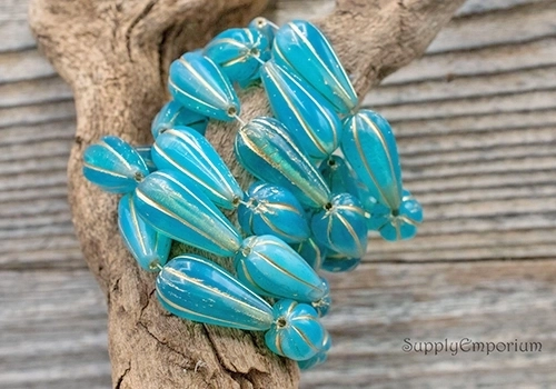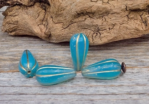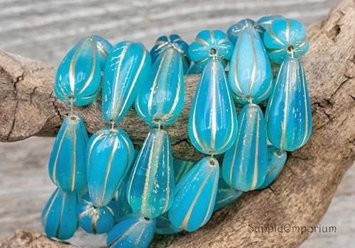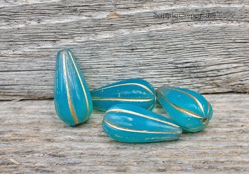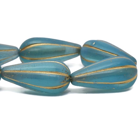 22x11mm Matte Gold Wash Turquoise Czech Melon Drop – 6 pieces – 2771R