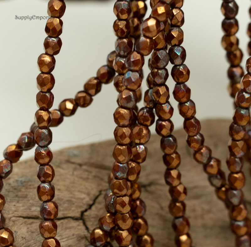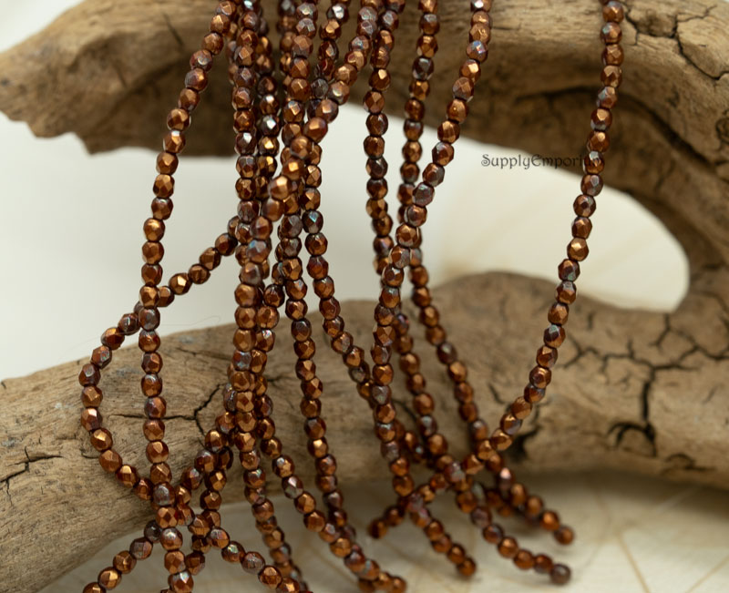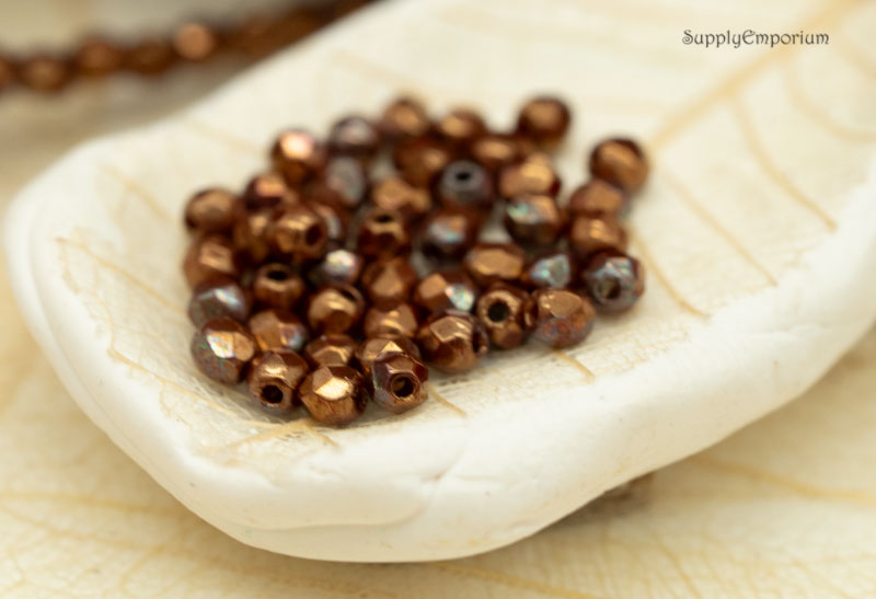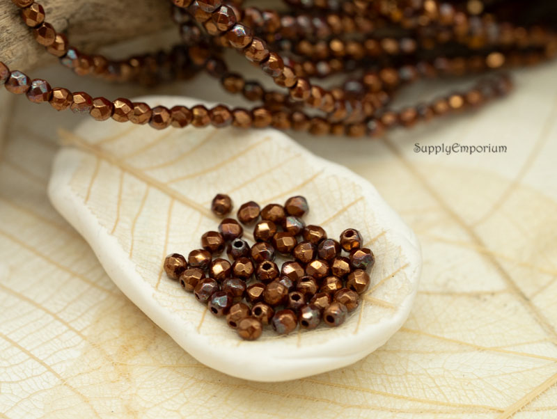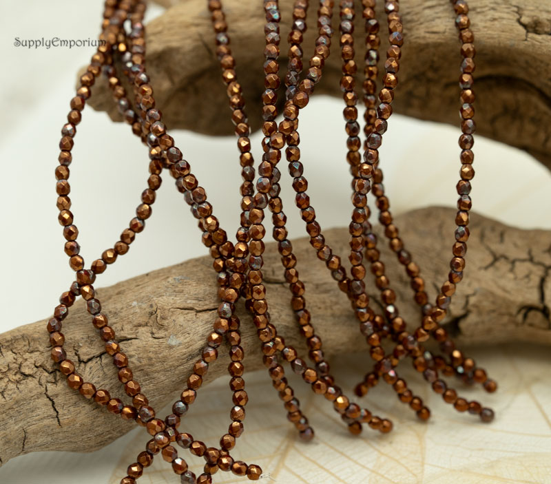 2mm Bronze Luster Iris Opaque Red Czech Fire Polish Round – 50 Pieces – 4831