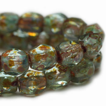 3mm Aqua Picasso Czech Fire Polish Round – 50 pieces – 4681