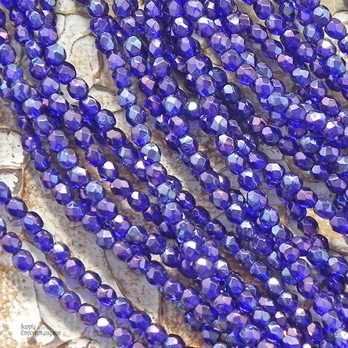 3mm Cobalt Vega Czech Fire Polish Round – 50 pieces – 2438