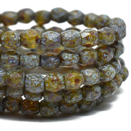 3mm Etched Topaz Picasso Turquoise Wash Czech Fire Polish Round – 50 pieces – 2314R