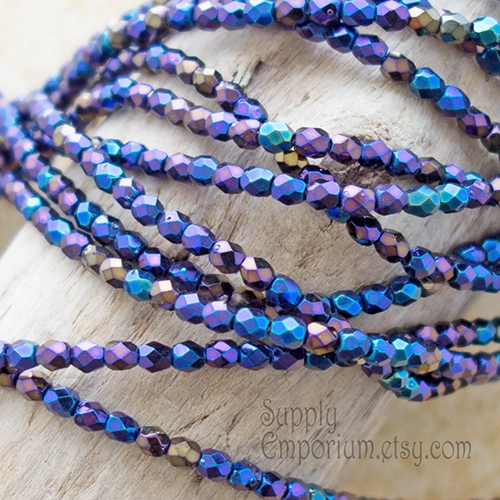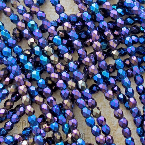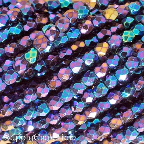 3mm Iris Blue Czech Fire Polish Round – 50 pieces – 2972