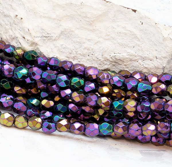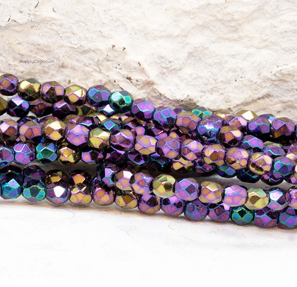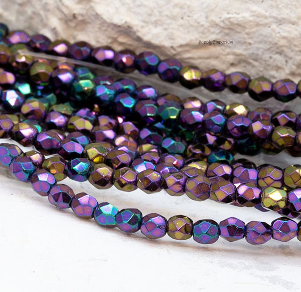 3mm Iris Purple Czech Fire Polish Round – 50 pieces – 1785R
